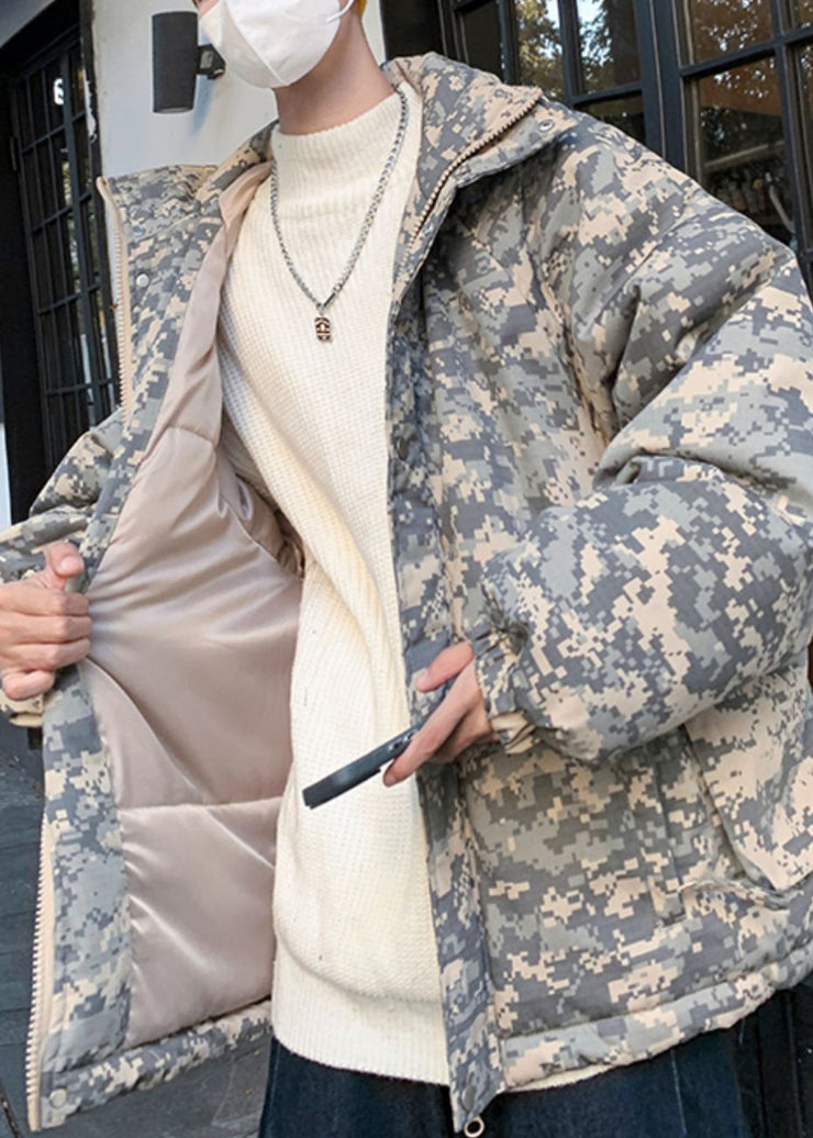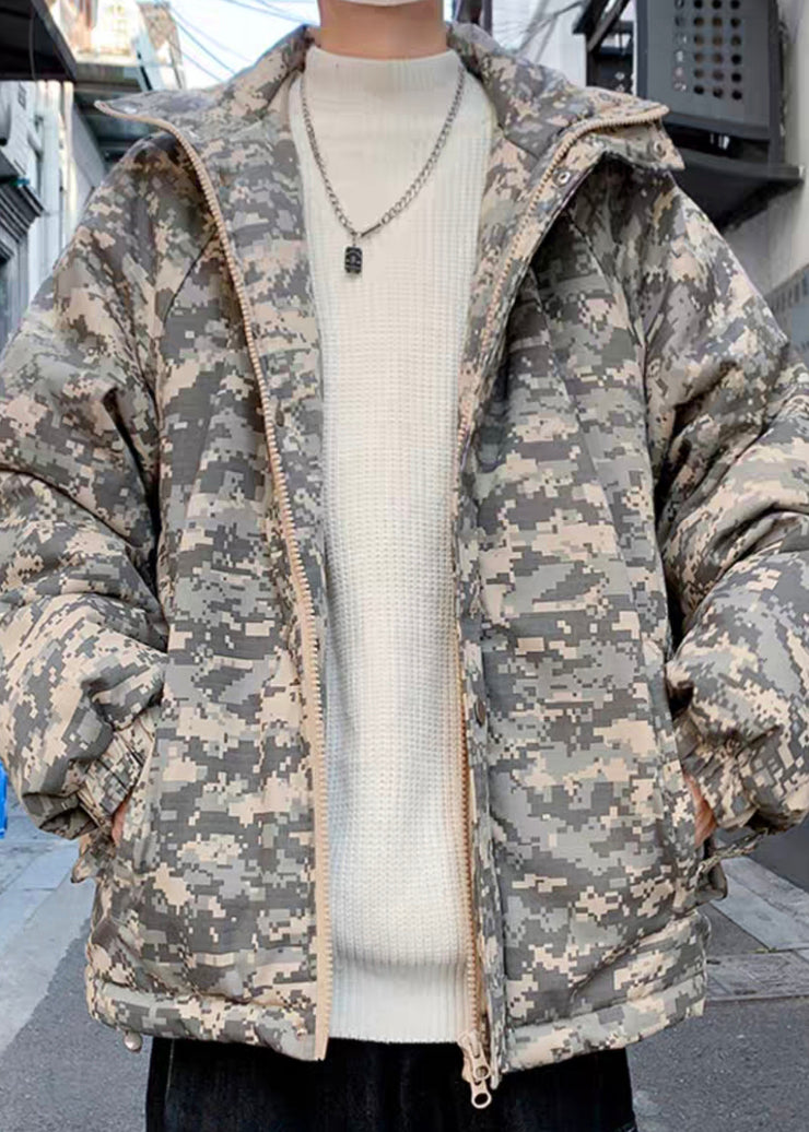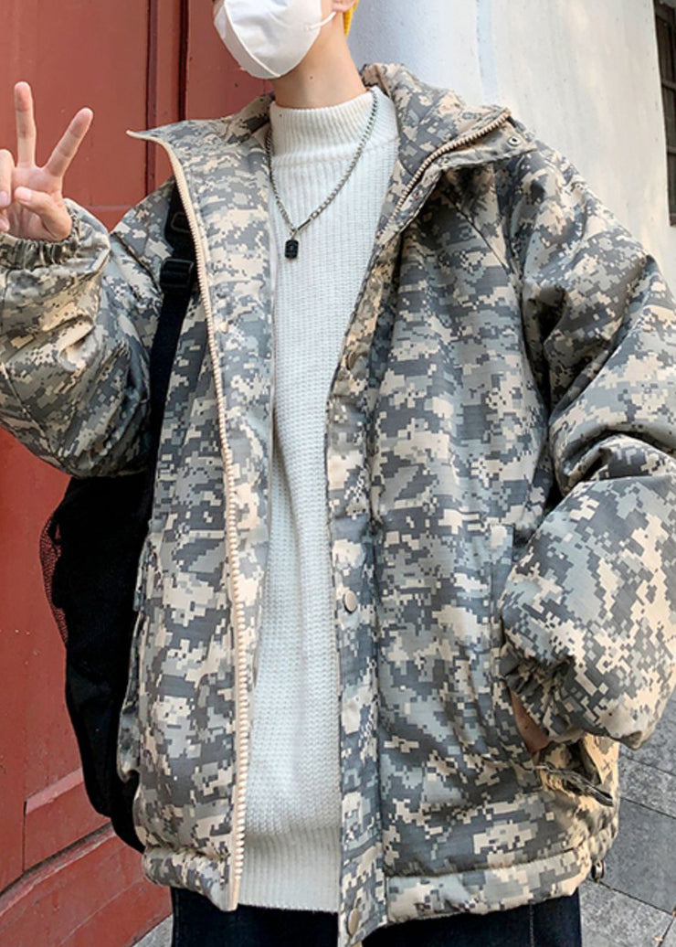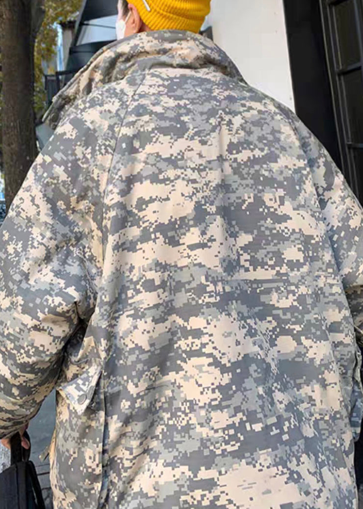 Unique Camouflage Stand Collar Pockets Mens Parka Spring