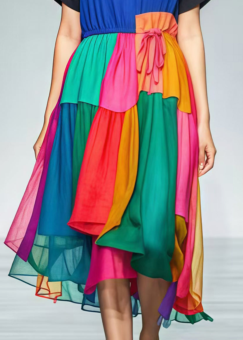 Black Patchwork Cotton Vacation Dresses Tie Waist Summer