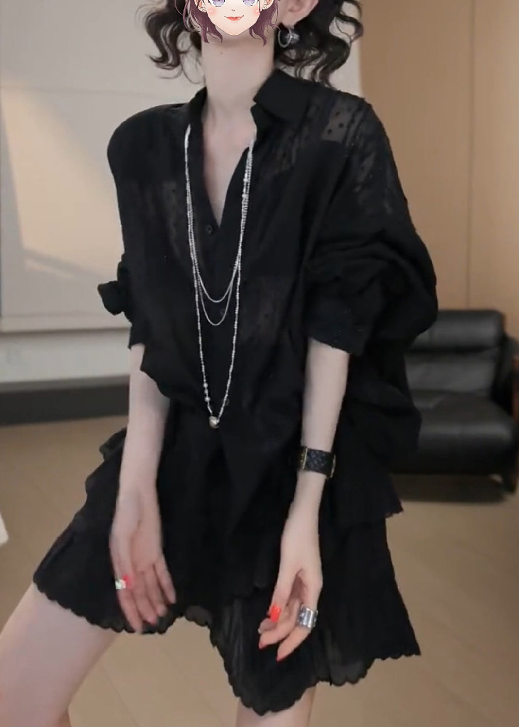 Cute Apricot Embroidered Patchwork Shirt And Skirts Two Pieces Set Fall