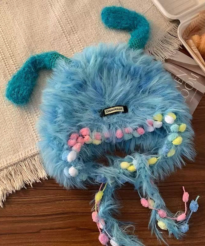 Cute Purple Thick Warm Fuzzy Fur Knit Bonnie Hat