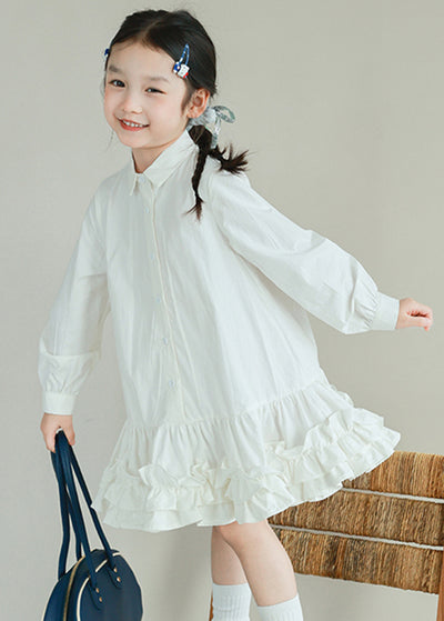 Brief White Peter Pan Collar Patchwork Button Girls Shirts Mid Dresses Spring