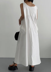Women White U Neck Cotton Robe Dresses Sleeveless