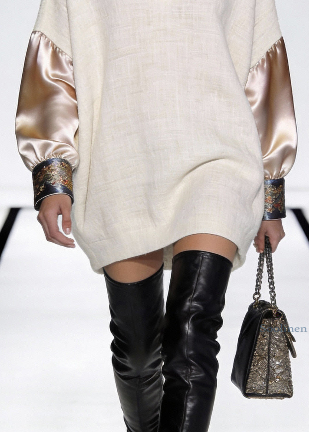 Beige Print Silk Patchwork Linen Mini Dress V Neck Spring