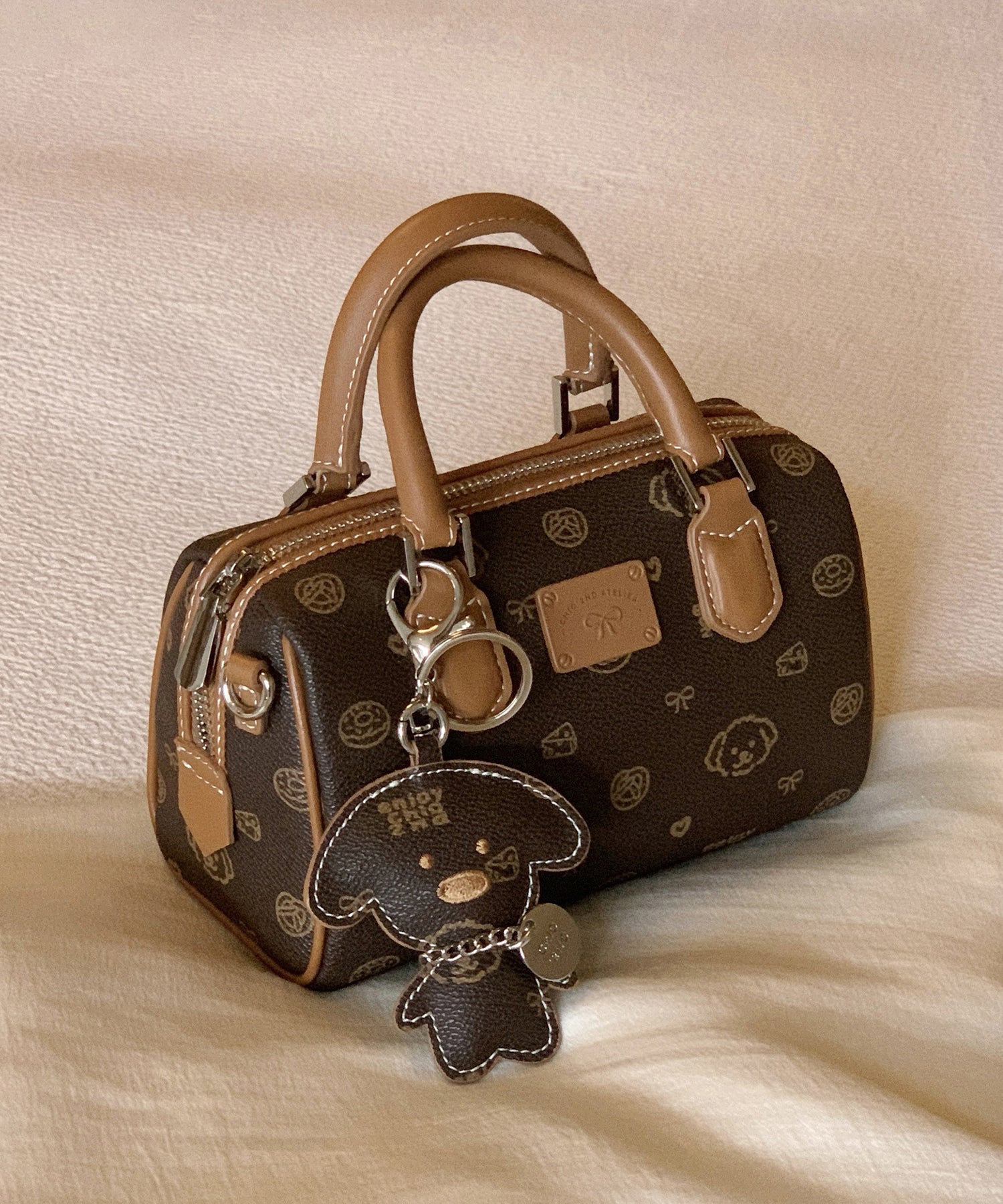 Chic Brown Cartoon Print Faux Leather Tote Handbag