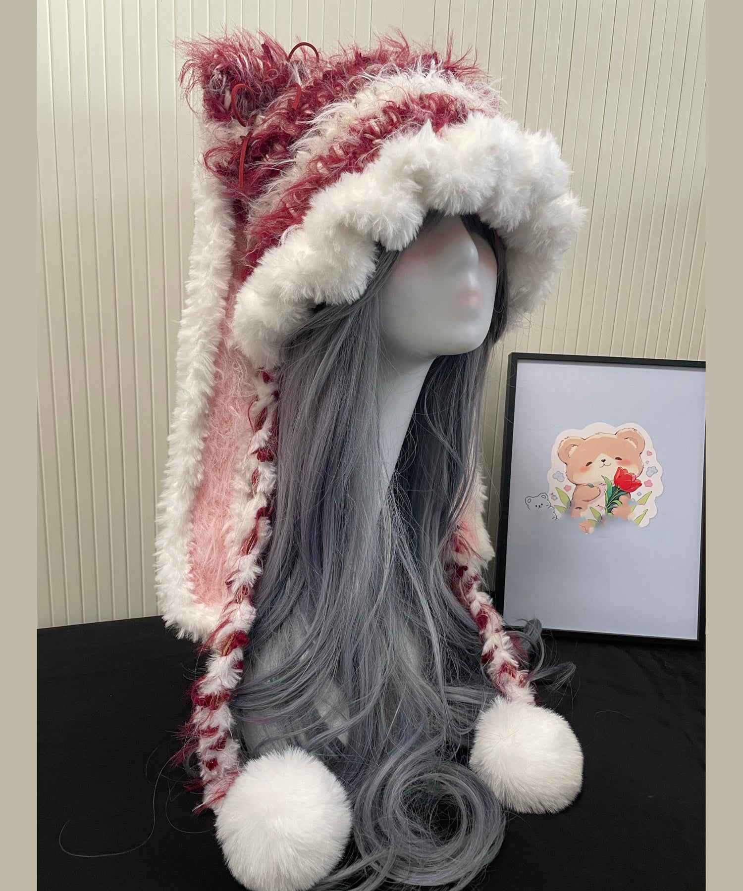 Cute Red And White Knitted Warm Fleece Boonie Hat