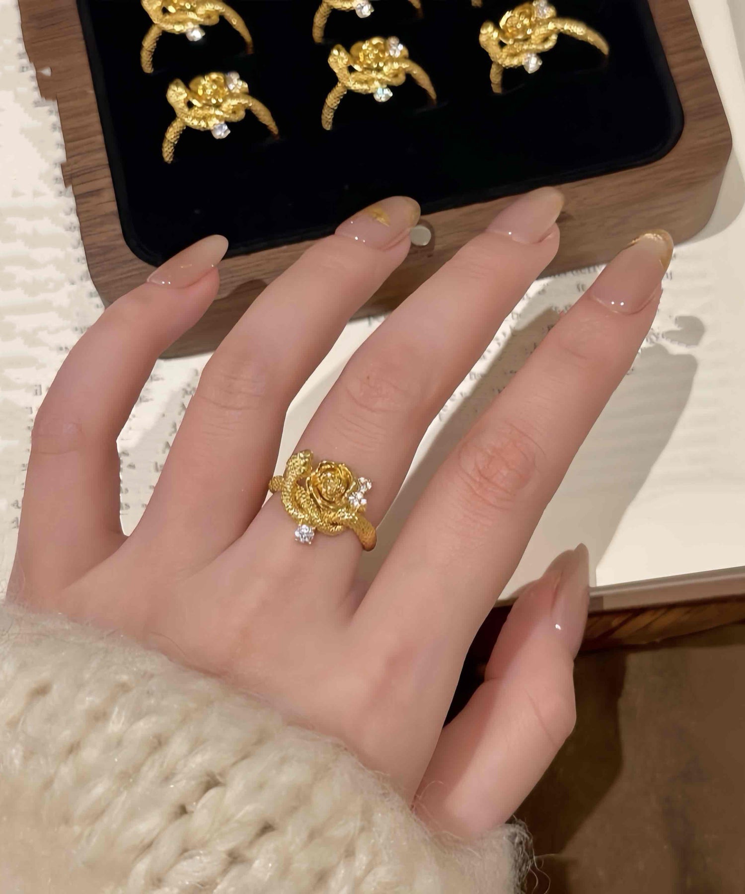 New Gold Sterling Silver Overgild Zircon Snake And Rose Rings