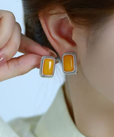Elegant Yellow Alloy Square Beeswax Stud Earrings