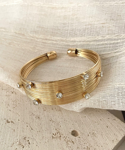 Fine Gold Sterling Silver Overgild Zircon Cross Sect Cuff