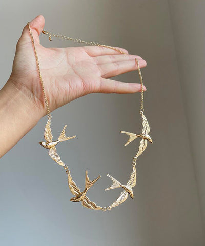 Modern Gold Copper Alloy Little Swallow Pendant Necklace