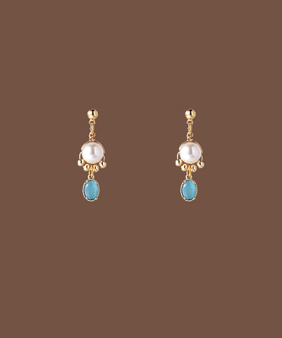 Original Gold Copper Alloy Cat Eye Stone Pearl Tassel Drop Earrings