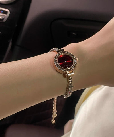 Classy Red Leather Zircon Baby's Breath Waterproof Watches