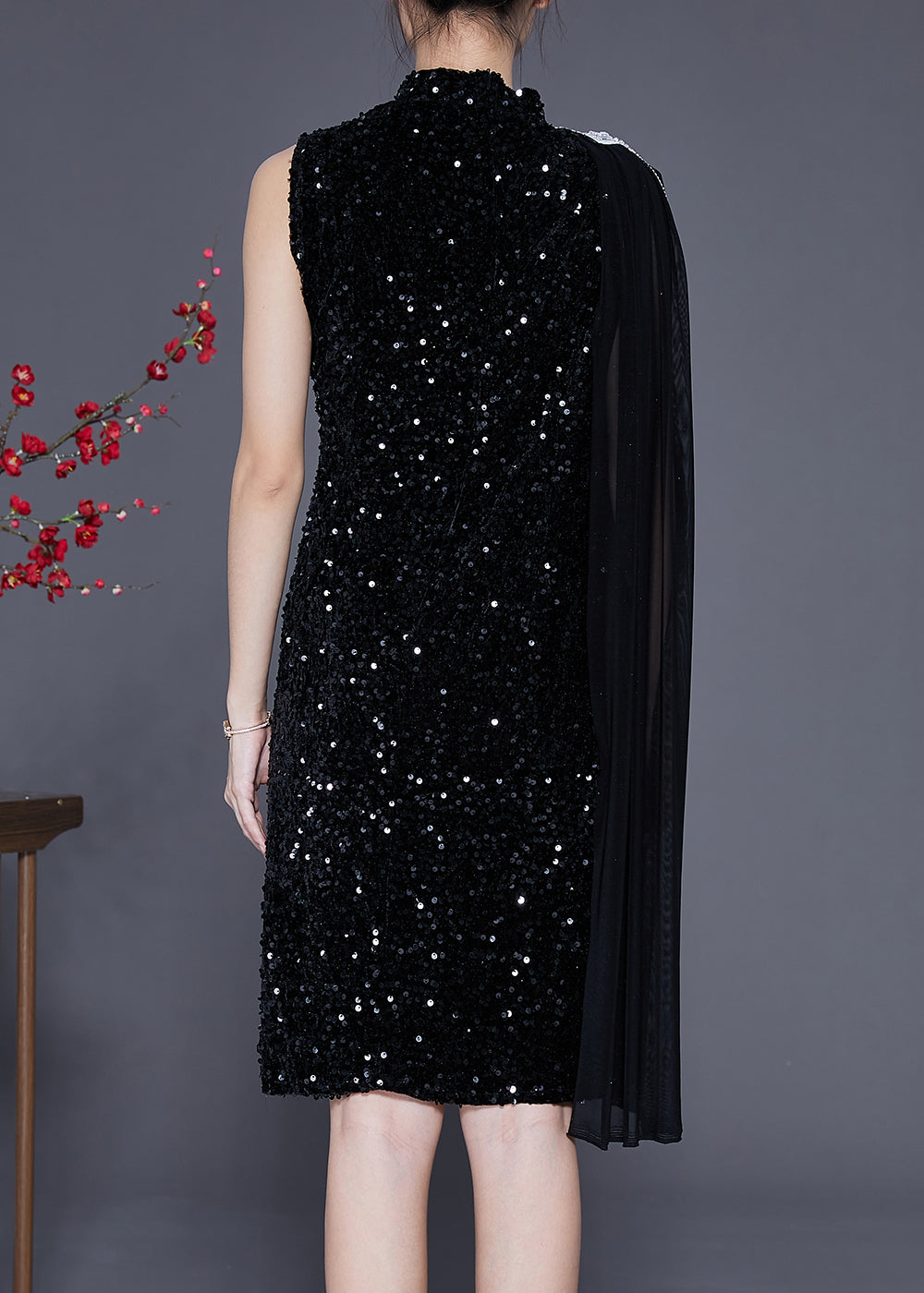 Chic Black Sequins Cloak Slim Fit Mid Dress Summer