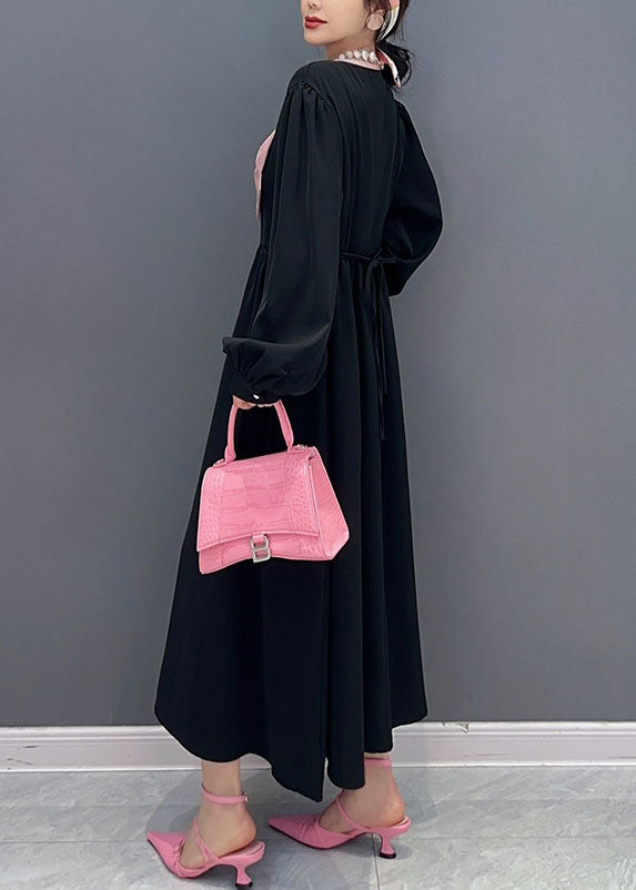 Unique Black V Neck Bow Patchwork Cotton Princess Dress Spring