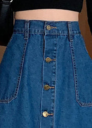 Plus Size Navy Elastischer Taillenknopf Extra großer Saum Baumwoll-Jeansrock Sommer