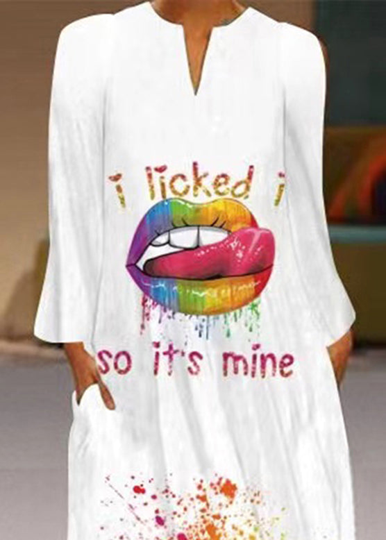 Beautiful White Print Pockets Maxi Dresses Long Sleeve