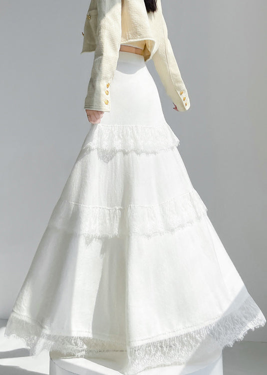 Apricot Lace Patchwork Solid Knit Skirt Elastic Waist