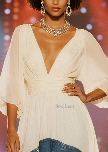 Classy White Exra Large Hem Patchwork Low High Design Chiffon Dress Summer
