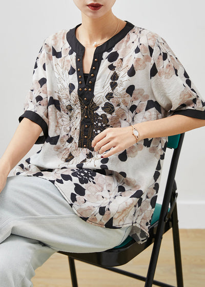 Simple Apricot Print Rivet Cotton Shirt Top Summer
