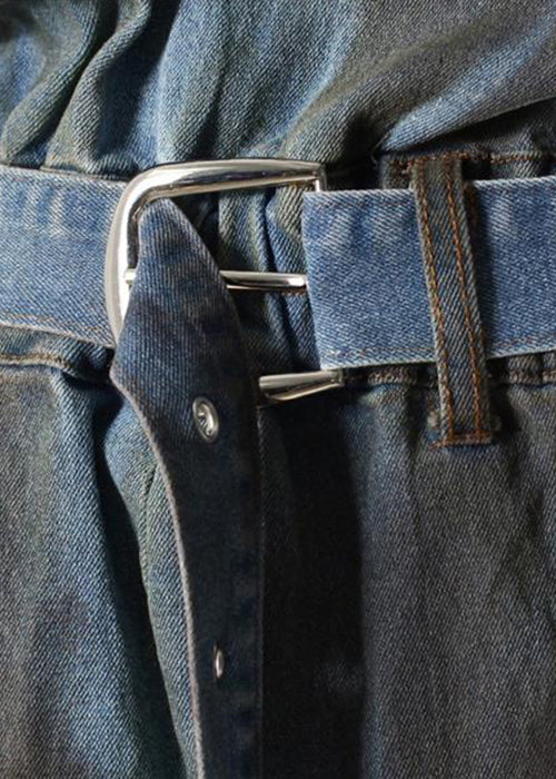 Original Design Blue Zip Up Pockets Sashes Denim Jumpsuit Summer