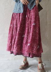 French Red elastische Taille Kordelzug Taschendruck Leinenröcke Frühling