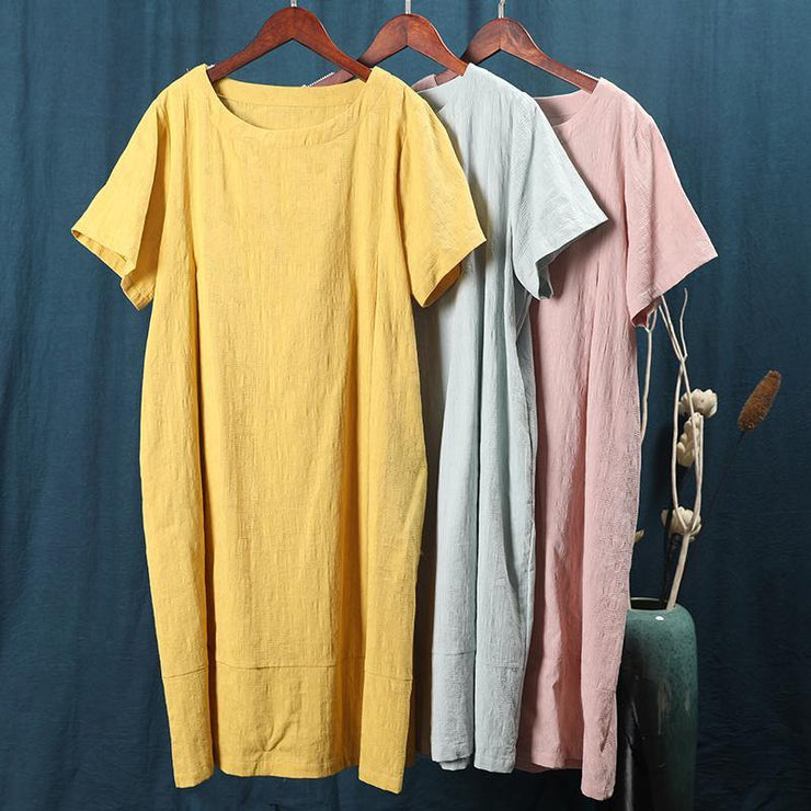 Elegant pink dresses o neck pockets Plus Size Dress - SooLinen