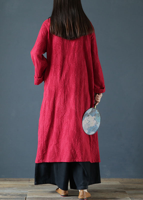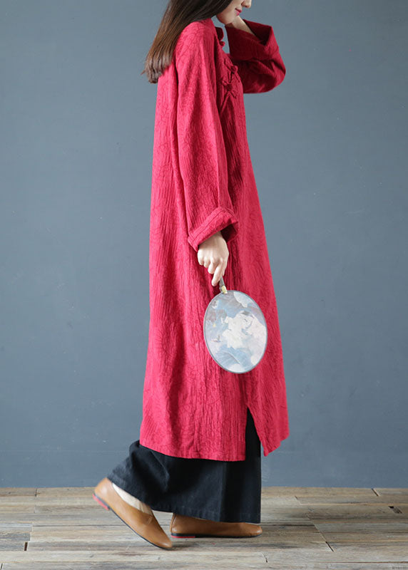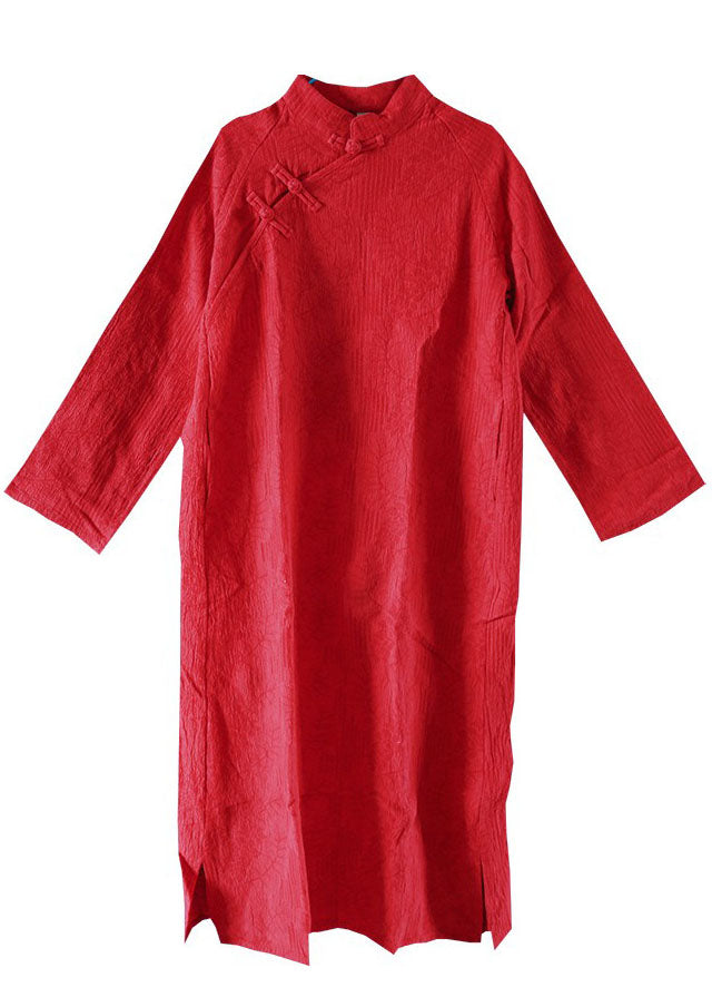 Beautiful Red Stand Collar Jacquard Wrinkled Cotton Dress Cheongsam Spring