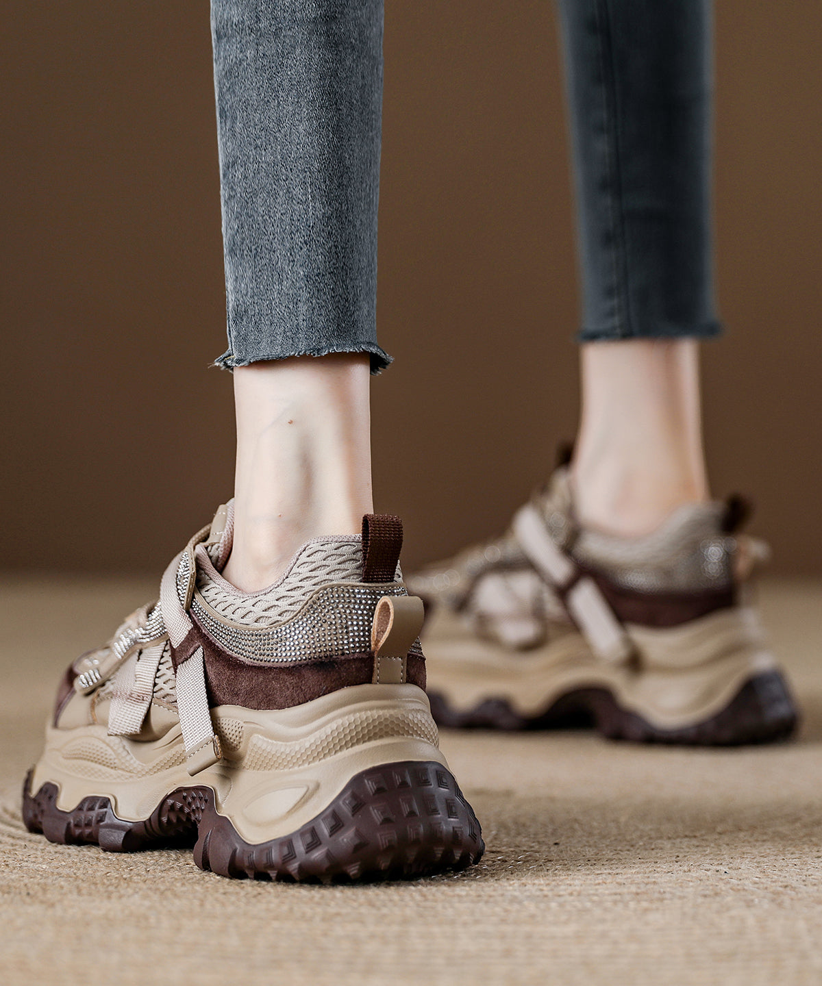 Yellow Zircon Platform Breathable Mesh 2025 Splicing Lace Up