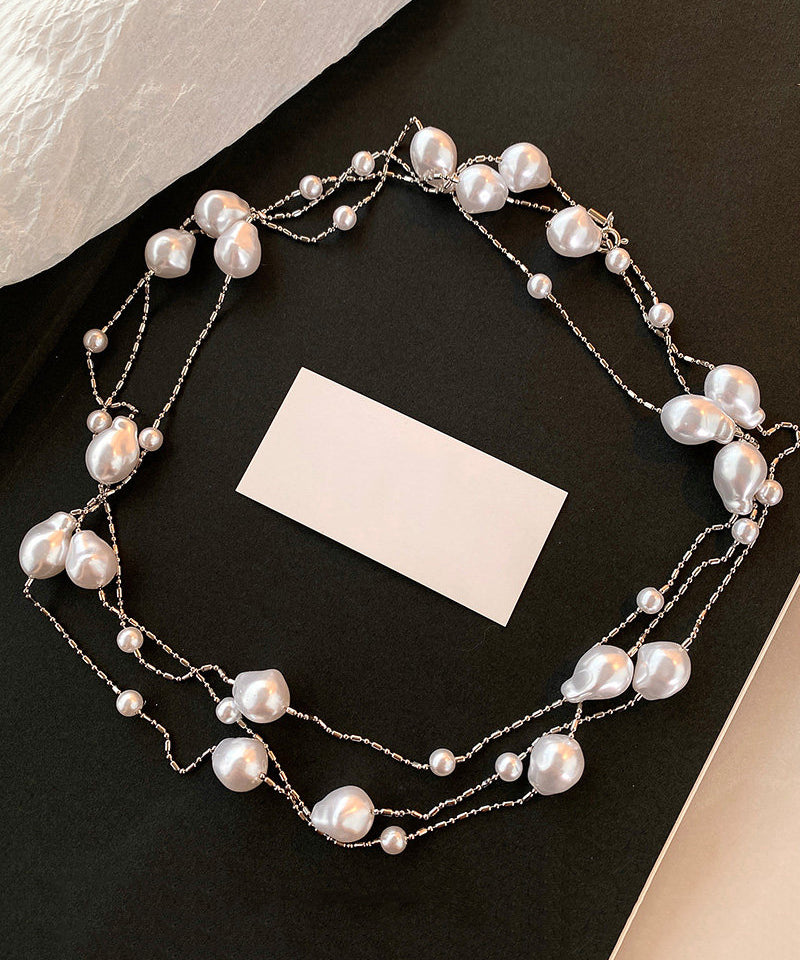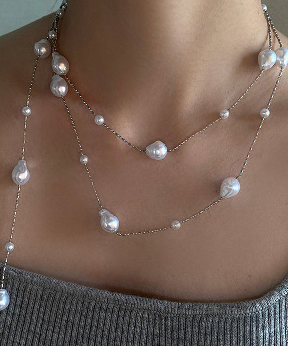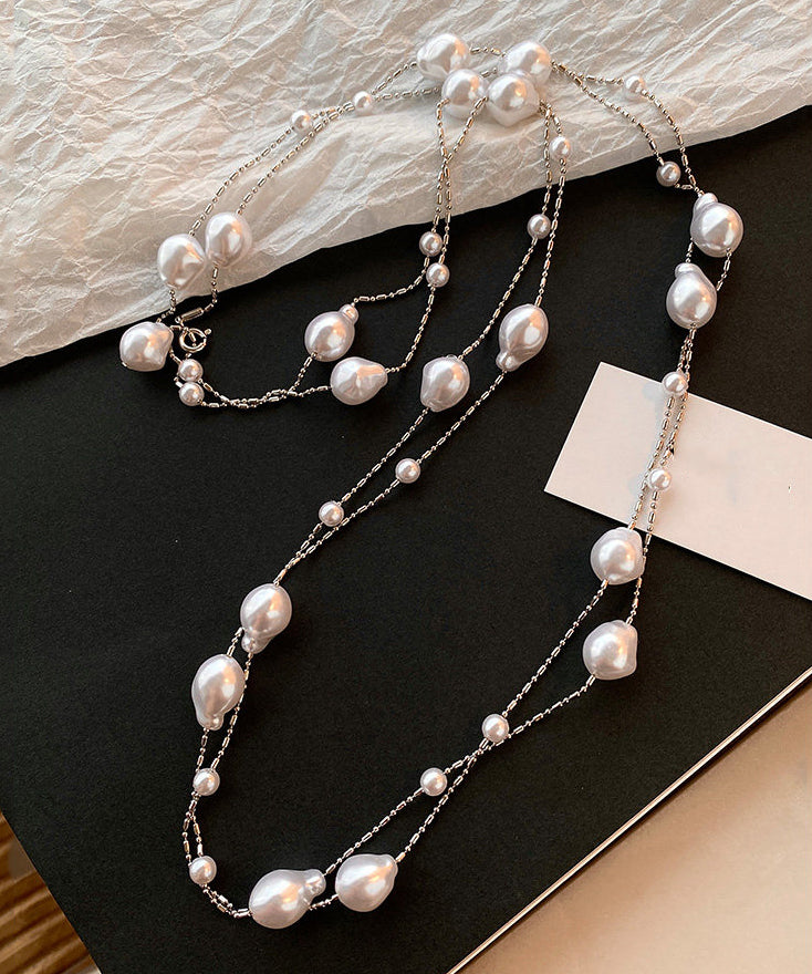 Fine White Asymmetry Pearl Copper Long Sweater Necklace
