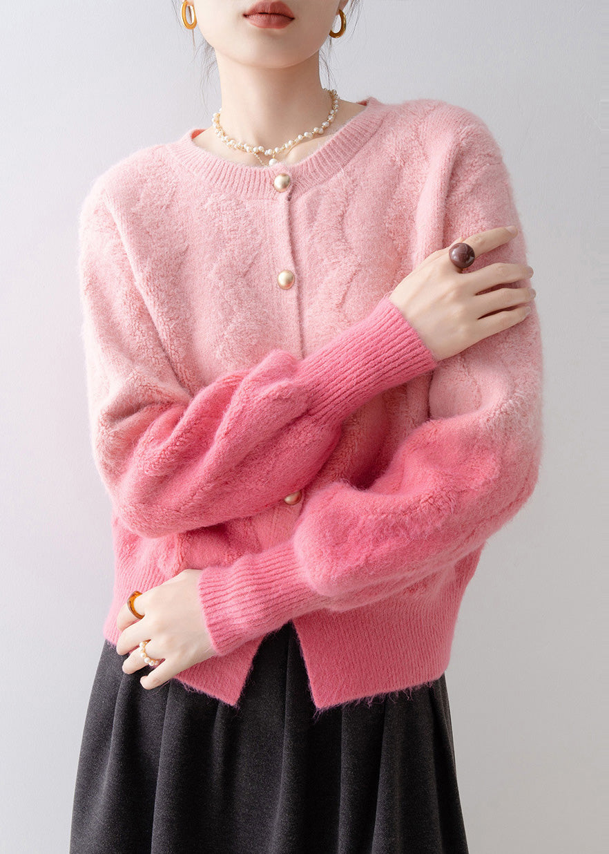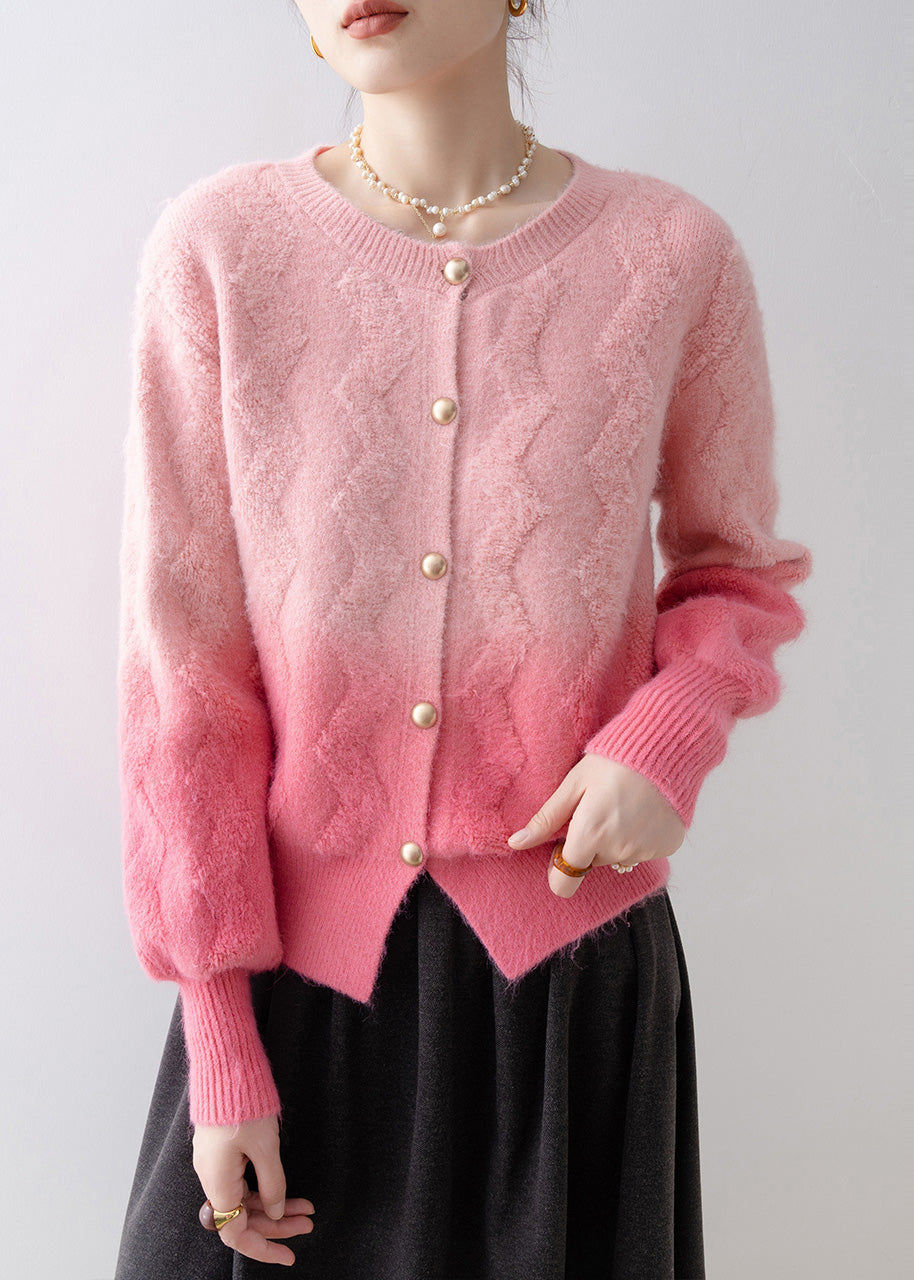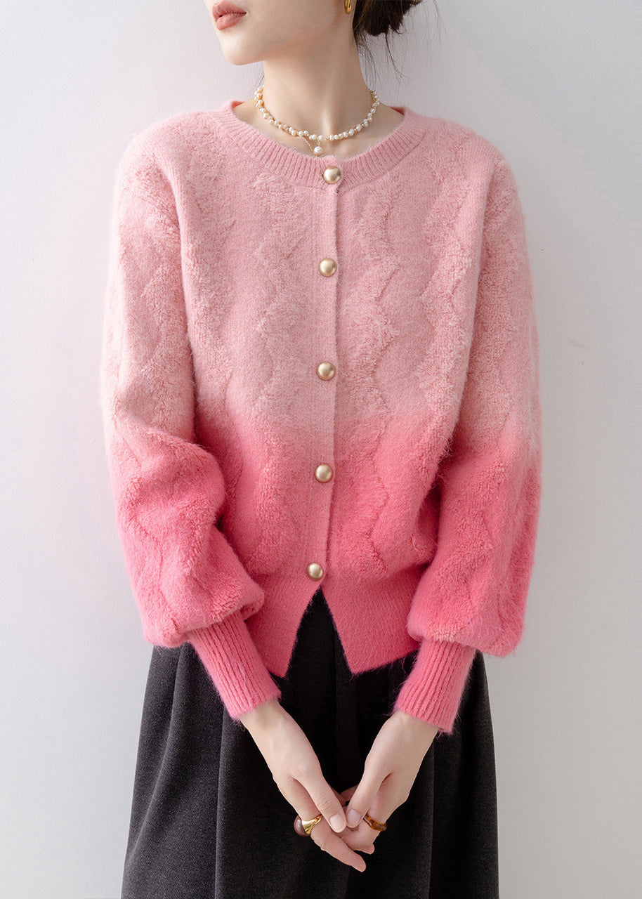 Italian Gradient Pink Warm Knit Cardigans Winter