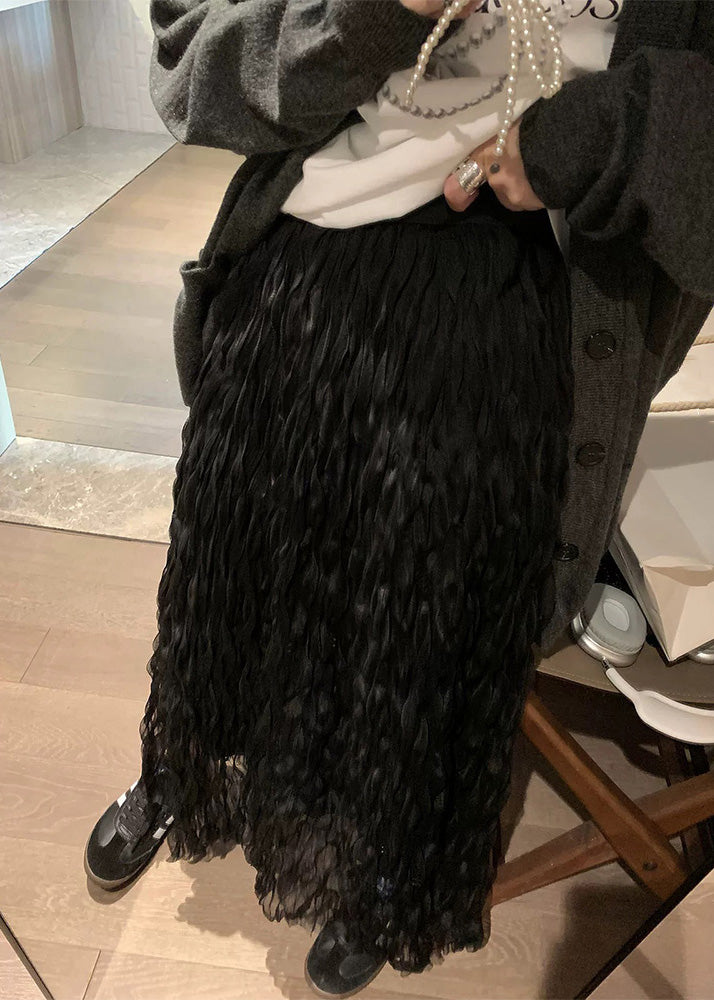 Elegant White Wrinkled Solid Elastic Waist Tulle Skirt Fall