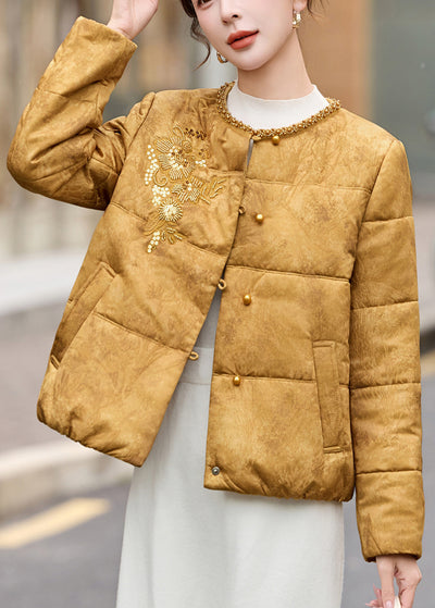 Style Yellow Sequins Embroidered Fine Cotton Filled Women Witner Coats