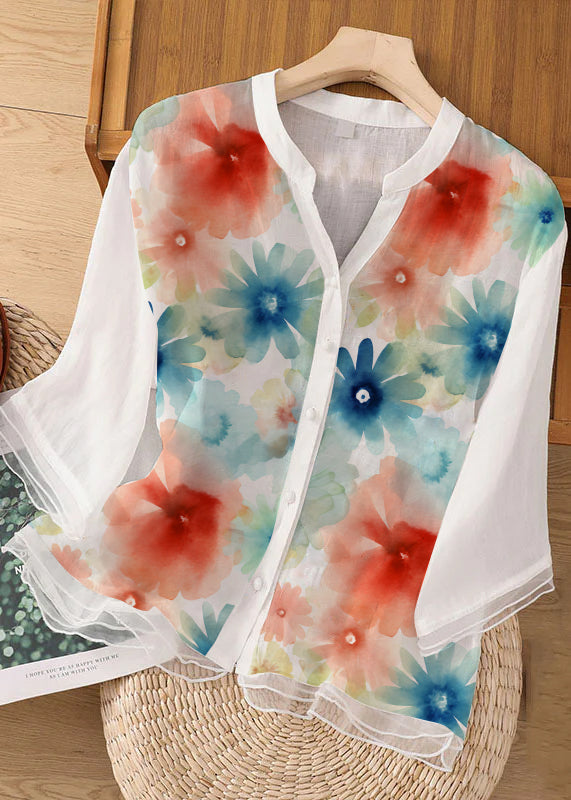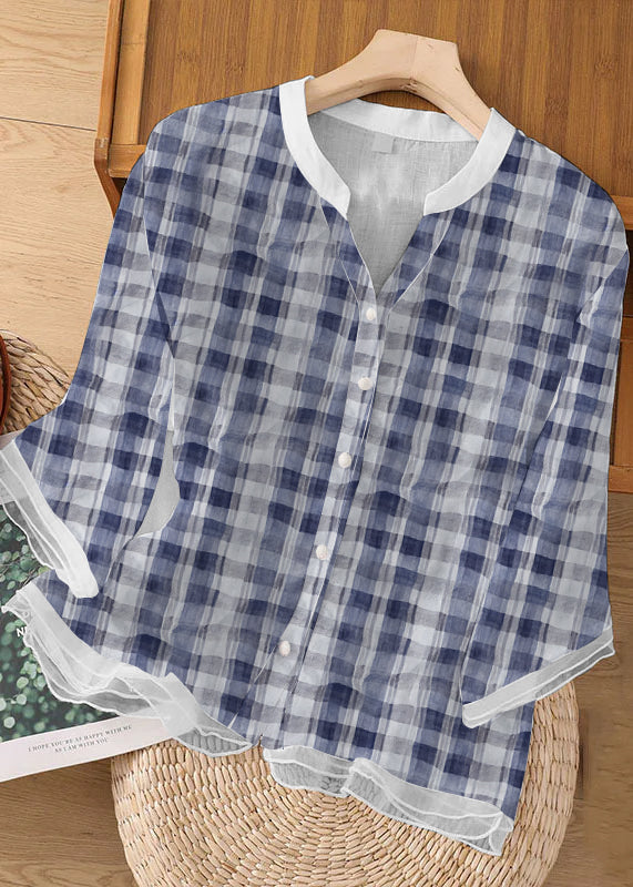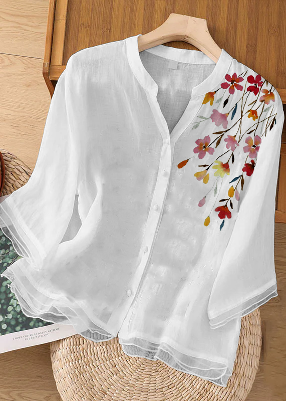 Chic yellow Embroideried Button Patchwork Linen Top Bracelet Sleeve