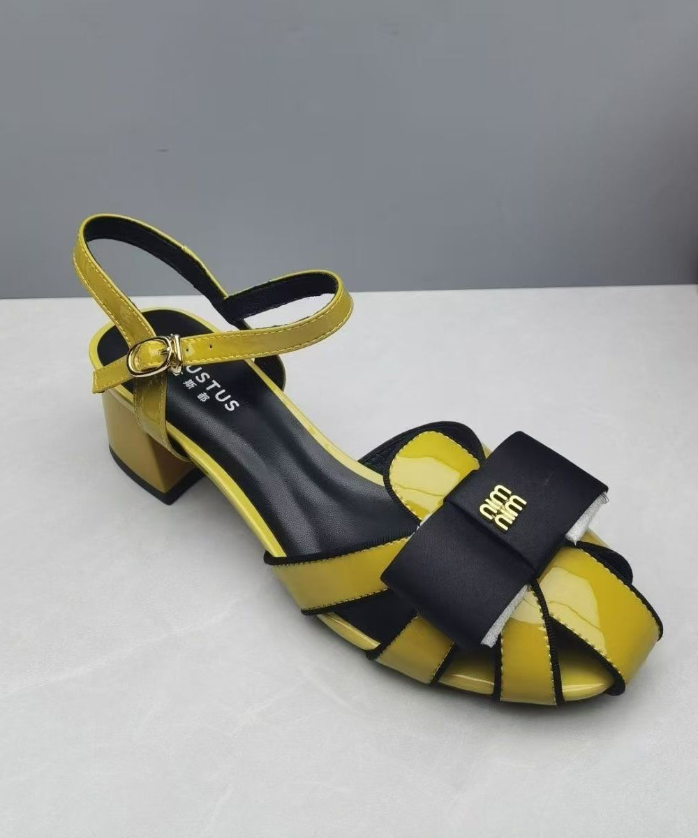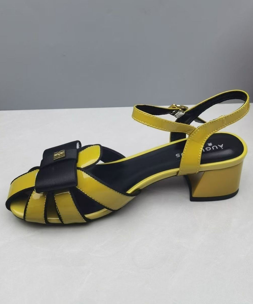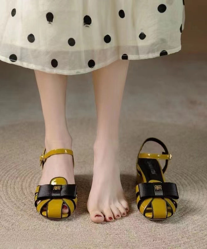 Faux Leather Yellow Splicing Buckle Strap Hollow Out Sandals