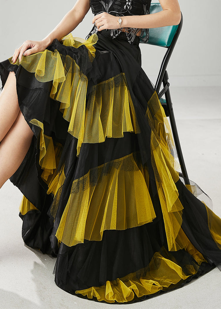 Boho Yellow Ruffled Patchwork Tulle Skirts Spring