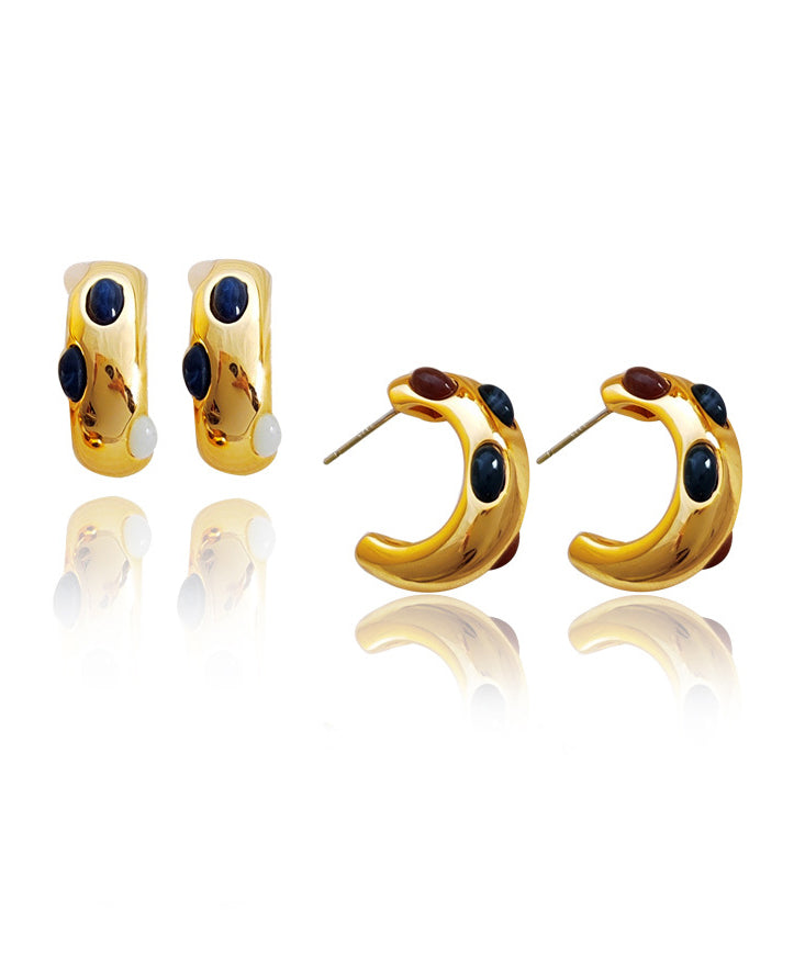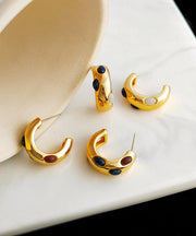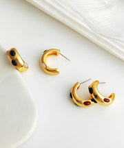 Classy White Copper Gold Plated C Graphic Resin Hoop Earrings
