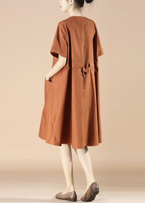 Beautiful Caramel V Neck Pockets Patchwork Cotton Dress Summer