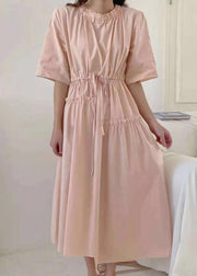 Women Pink O-Neck Asymmetrical Patchwork Cotton Dress Summer