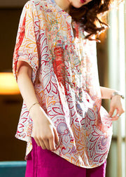 Orange Print Patchwork Chiffon Top O Neck Half Sleeve