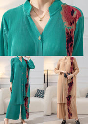 Apricot Print Wrinkled Two Pieces Set V Neck Low High Design Spring