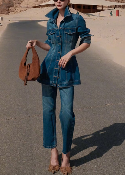 Original Blue Peter Pan Collar Button Denim Two Pieces Set Fall