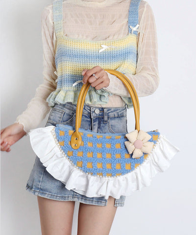 Vintage Fan-shaped Patchwork Ruffles Wool Tote Bag