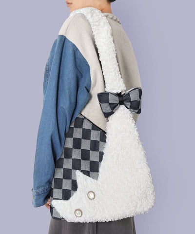 Vintage White Teddy Patchwork Plaid Shoulder Bags