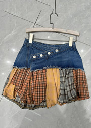 Retro Black Plaid Patchwork High Waist Denim Skirt Summer