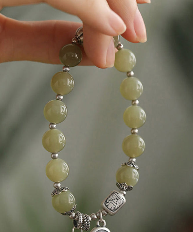 Boutique Light Green Sterling Silver Jade Charm Bracelet And Rings Two Piece Set Charm Bracelet
