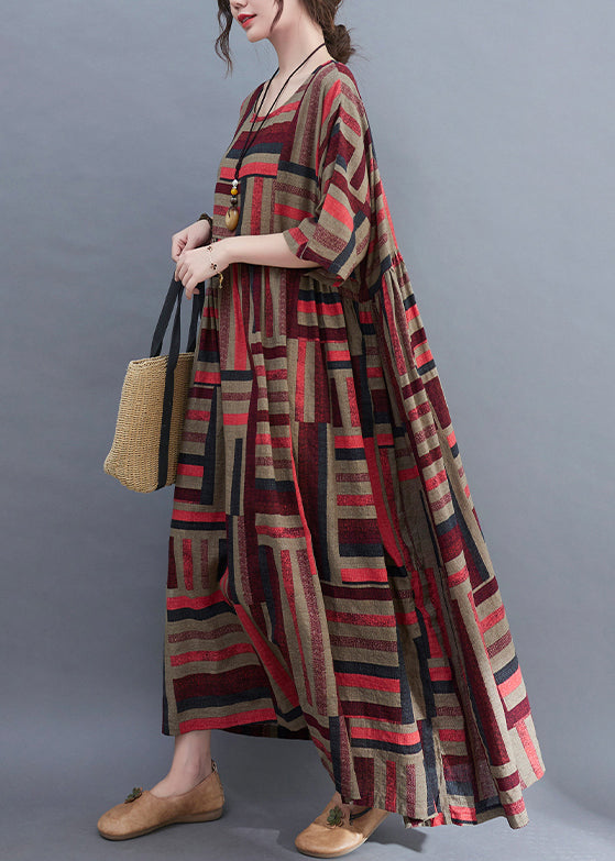 Fashion Red O-Neck wrinkled Loose Holiday Dress Short Sleeve