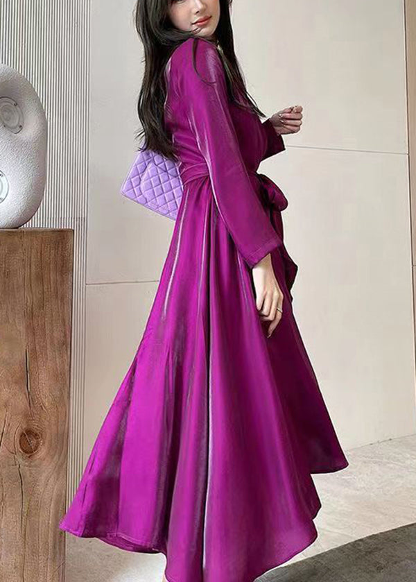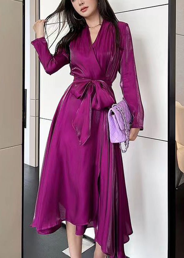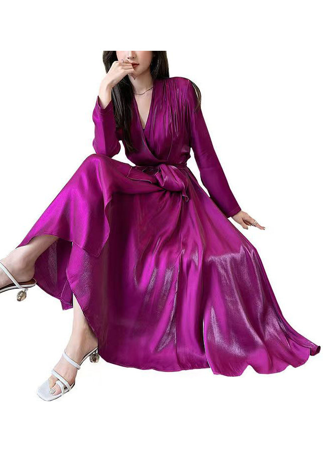 Fashion Rose V Neck Tie Waist Silk Long Dress Spring