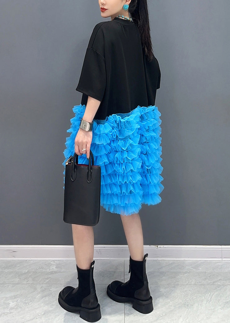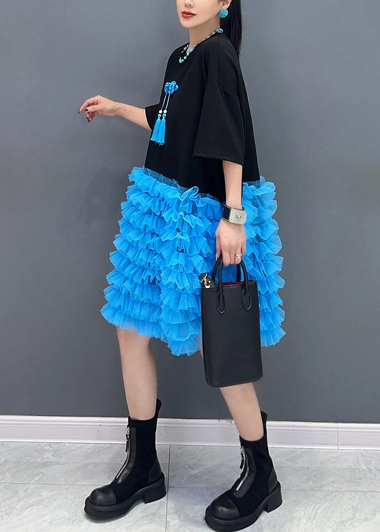 Style Black Ruffled Patchwork Tulle Tea Dresses Summer