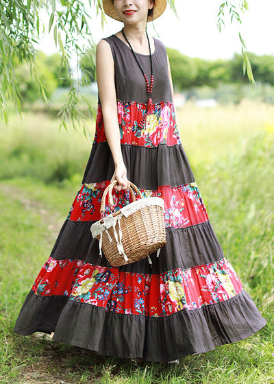 Women Grey O-Neck print Patchwork vacation Dress Sleeveless