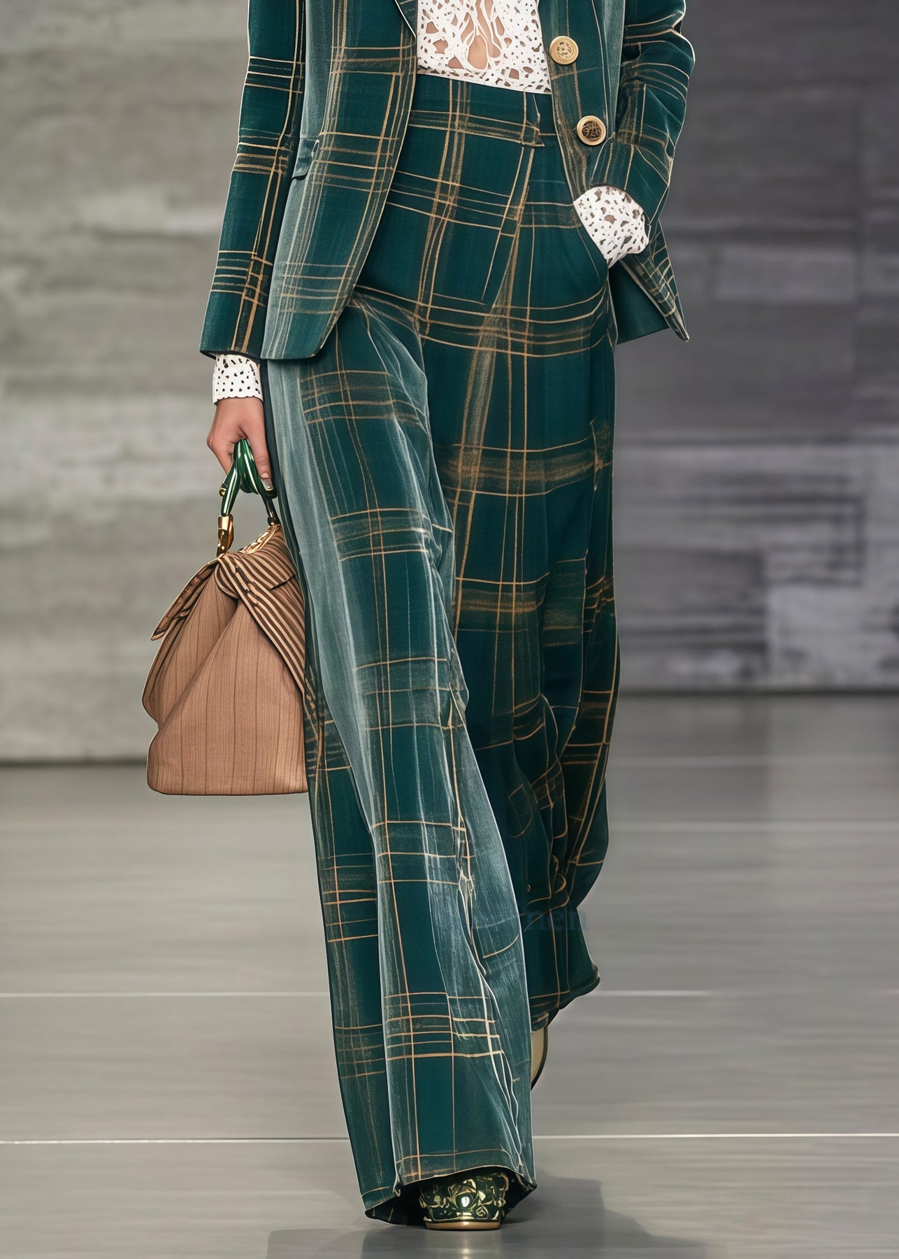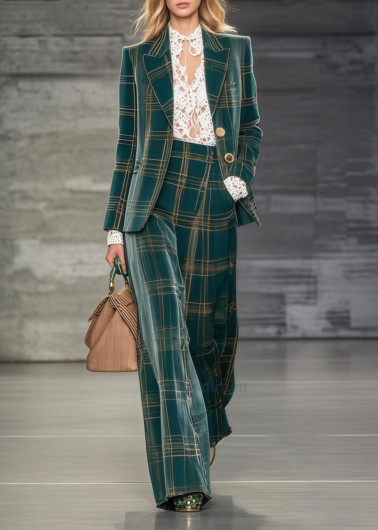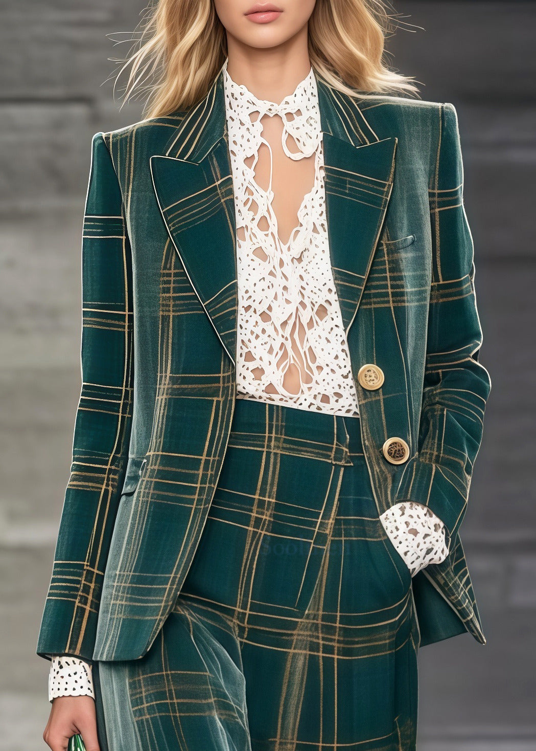 Boutique Green Oversized Plaid Cotton Two Pieces Set Spring