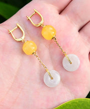 Boho Yellow Sterling Silver Overgild Jade Beeswax Drop Earrings